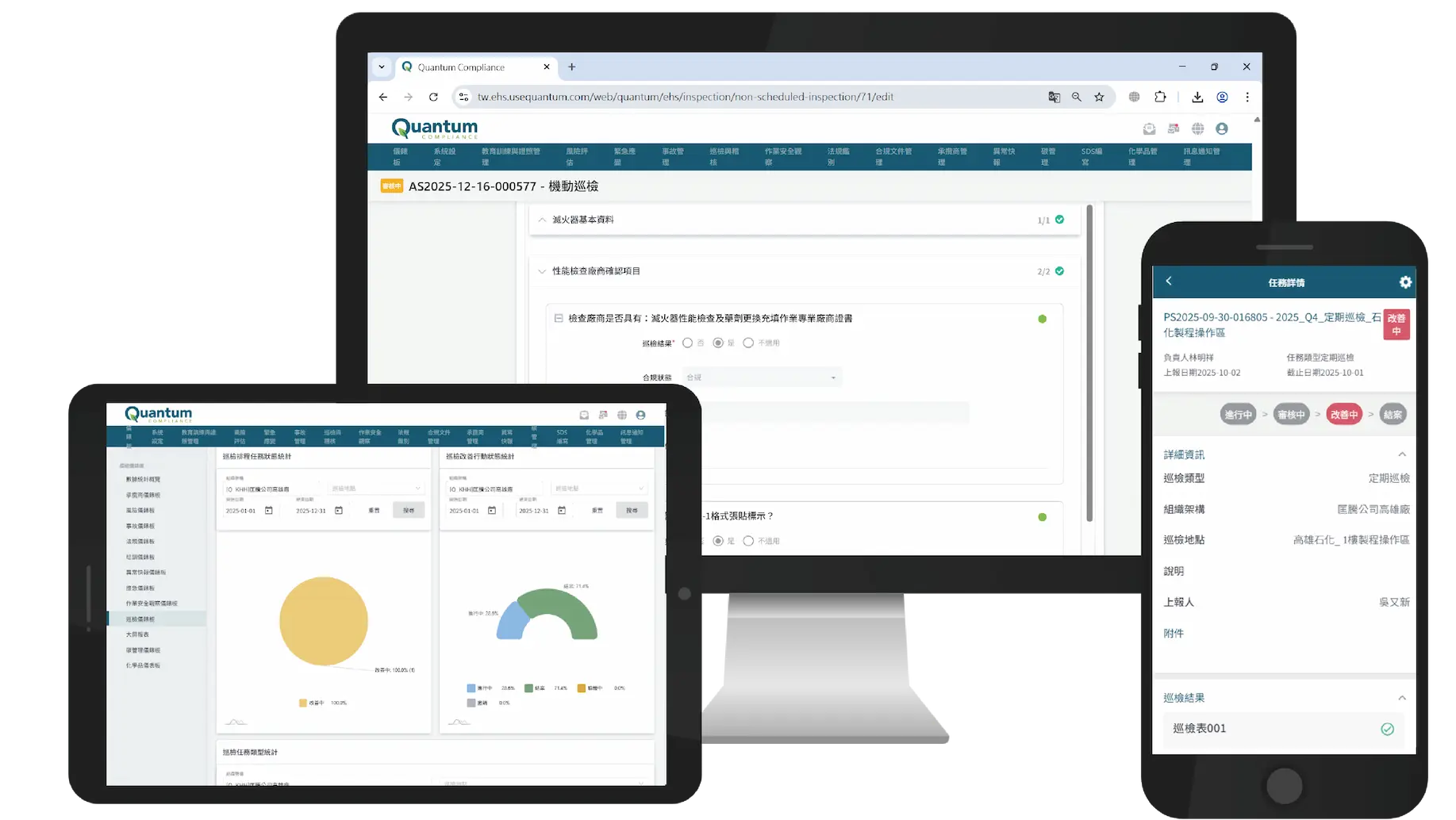 設備密集、環境要求高、EHS 標準嚴格、工廠巡檢作業頻繁,需統一追蹤、有效整合現場資料並提高稽核效率。
