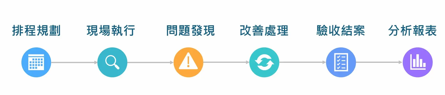 | 時機 | 定期執行,可機動安排 | 即時回報,不受時段限制 | 日常作業過程中進行 | 補足巡檢以外的風險掌握 |