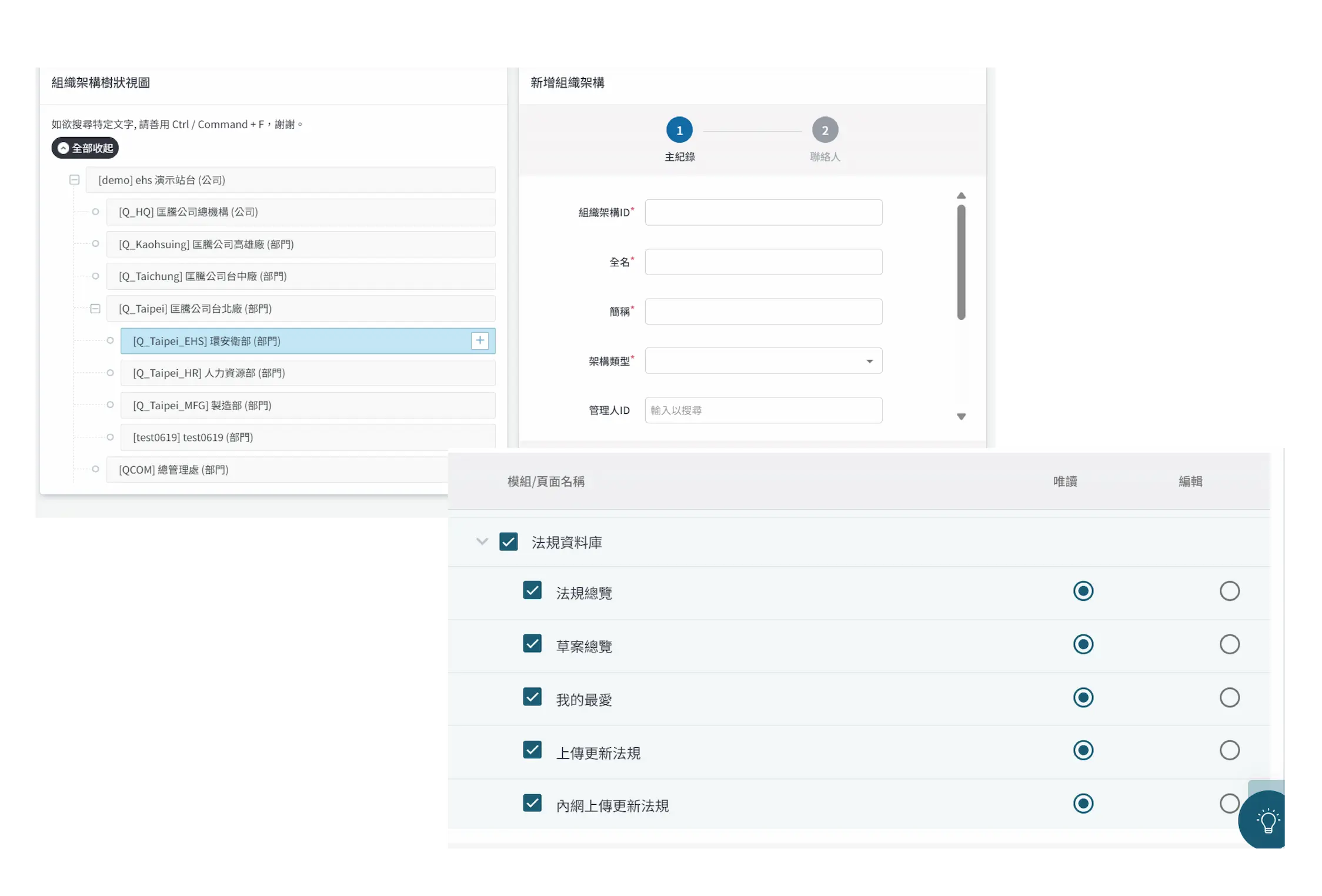 系統可依組織需求設定不同部門、角色與權限,靈活支援跨部門、多單位、多層級企業使用情境,確保資料集中與權限清楚。